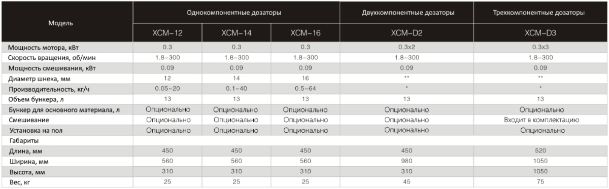 Шнековые дозаторы серии XCM адаптированы для автоматического пропорционального смешивания новых материалов, измельченных материалов, маточной смеси или добавок, адаптируемых к области инжекции, экструзии или выдувного формования. В этой серии используется шаговый двигатель, в соответствии с заданной пропорцией смешивания, микропроцессор точно контролирует вращение высокоточного дозирующего шнека для добавления материалов с отклонением ±1%. Этот дозатор может синхронно соединяться с сигналами различных машин для обеспечения стабильности дозирования.